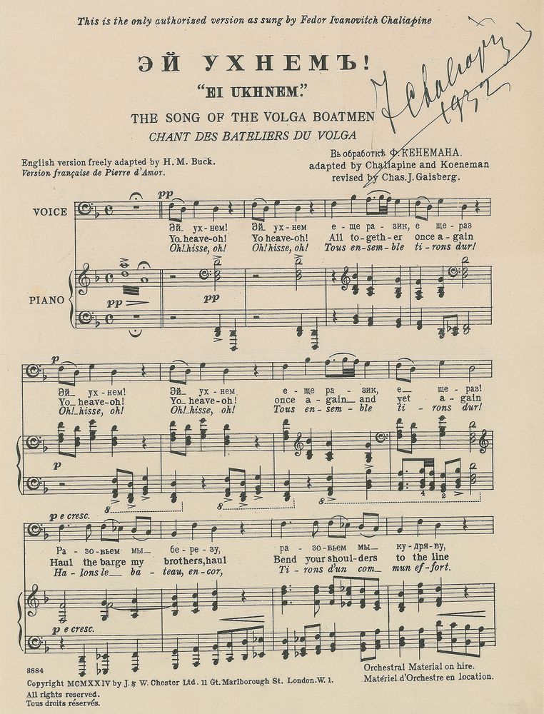 Feodor Chaliapin Signed Sheet